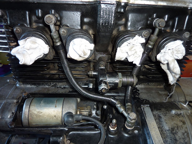 First thing's first, cover all ports and oil holes with rags etc. to keep the debris out of the important bits. I want to try and keep this engine in one piece, only to remove covers for repair and inspection.