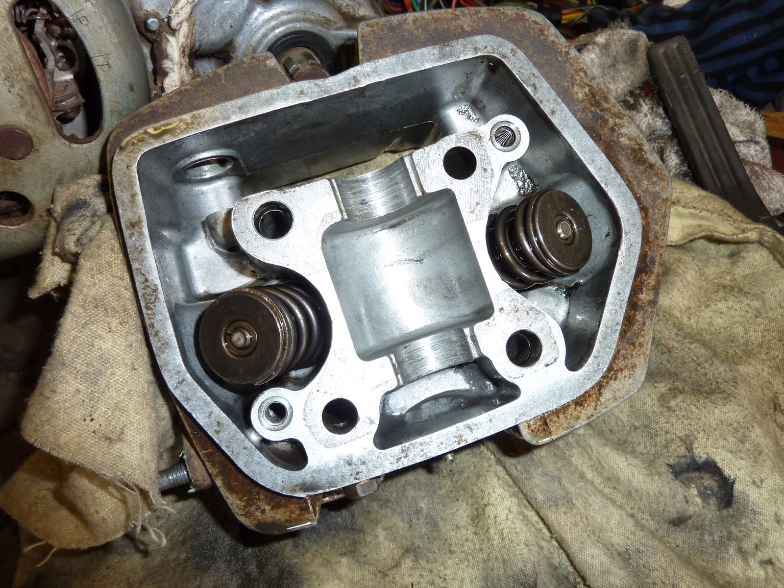 The cutaway for the exhaust valve is also deeper than the inlet, which doesn't seem right. It might've been fitted the wrong way round, but maybe it's just one of those things, as I can't actually see any indication of direction at all. What happened to a good old arrow on the top with 'standard' or oversize dimensions on it?
