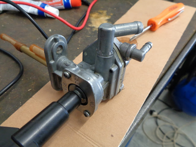 The black plastic extension was loose on the petrol tap, but a clean up of the thread with a tap and the fitting of a longer screw got that sorted. The fuel outlet was also slightly loose, more on that later.